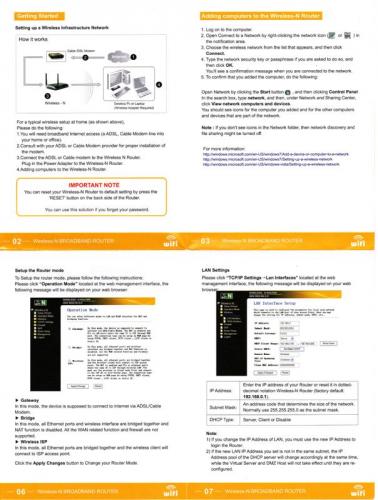 Ik heb een WIFI Telenet modem/router. Deze staat onder in de kelder geplaatst ( kon helaas niet anders:hmpf:). Daardoor heb ik totaal geen ontvangst op deze modem:thumpdown:. Van Telenet modem een kabeltje getrokken via buis van TV naar de woonkamer ( deze kabel ging net door de buis ). In de woonkamer staat nu een aparte router en heb alzo draadloos doorheen het hele huis:top:. (werkt perfect ). En de bedoeling is om deze oude router (type te vervangen door een snelle router ( type n). Niet meer en niet minder. Maar als ik de oude router vervang door de nieuwe router heb ik alleen "lokaal toegang zonder internet":thumpdown: Dit is de handleiding van de router ( helaas niet in volgorde ge-upload:hmmmm:, maar dat zie je wel). Hoe moet ik een screen maken van het draadloos en van LAN gedeelte? Of is dit nu niet meer nodig? -