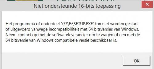 Ik heb een aantal cd's met daarop "The complete Birds of the Western Palearctic" en die installeerden zich moeiteloos op mijn oude 32-bits computer. Ik heb nu een nieuwe, 64-bits, laptop met W 8.1 en nu krijg ik die cd's niet meer aan de praat. Ik krijg wel de boodschap: zie bijlage. Mijn vraag is: Bestaat er een hulpprogramma waarmee ik deze dure vogel-encyclopedie weer werkend krijg? Al vast mijn dank. Groet, Frans