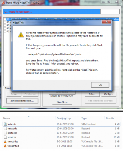 Tijdens het draaien van Hijackthis krijg ik dit bericht te zien. is dat een mogelijke oorzaak? Ik voer het programma wel als administrator uit.