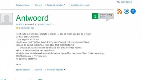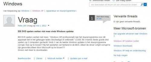 Hallo Jean-Pierre, Ik blijf nog altijd verder zoeken naar een oplossing voor mijn probleem. Ik vond bij "Support" van Microsoft volgende forum: Ik ben een LEEK, dus vraag ik u, zou dit bij mijn probleem, een oplossing kunnen bieden ? Riskeer ik geen beschadiging bij deze actie ? Graag een seintje. Roland. -