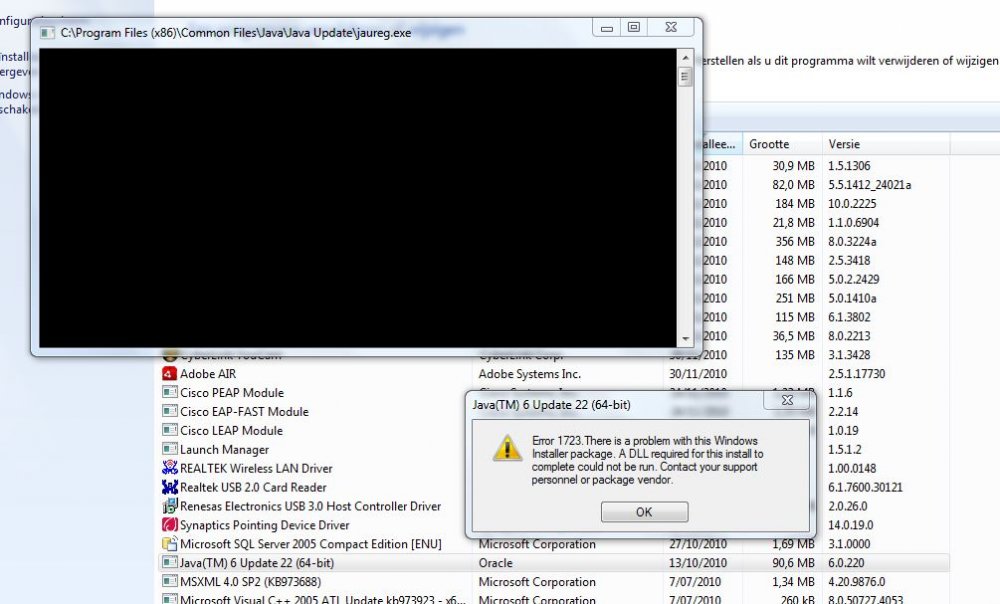 kwezie wabitt, Opruiming gedaan maar de Java (Java(TM) 6 Update 22 mag je ook verwijderen want die is al jaren verouderd.) krijg ik niet verwijderd. zie bijgaande Fot.
