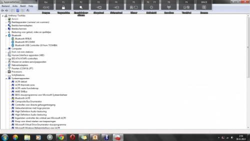 16. hey iedereen, ik heb een Toshiba Satellite L750D laptop die die heel goed werkt, alleen heeft hij 1 probleem; Ik kan bluetooth niet inschakelen. enkele weken geleden kon ik Bluetooth nog wel inschakelen, maar kon ik niet met andere apparaten verbinden, mijn pc gaf dan een foutmelding of vond het andere apparaat niet. Nu, enkele weken later, lukt het zelfs niet meer om bluetooth gewoon in te schakelen... Wanneer ik naar apparaatbeheer ga en naar de Bluetooth-functie kijk, zie ik dit: mijn laptop zegt dus wel dat bluetooth ingeschakelt is, maar dat is helemaal niet zo. Wanneer ik vanonden bij mijn taakbalk ga kijken of ik daar een bluetooth-verbinding heb zie ik dit: Het icoontje is rood, wat dus betekent dat bluetooth niet aan staat, toch? als ik vervolgens op het icoontje klik, gebeurt er helemaal niets, terwijl er normaal een pop-up venster moet openen. wanneer ik naar start ga en intyp "bluetooth manager" en ik klik er vervolgens op, gebeurt er gewoon niets, er opent niets. Als ik de bluetooth-assistant open zie ik dit: en wanneer ik op de grote knop rechts "functie inschakelen van bluetooth" wil drukken, gebeurt er ook niets. als ik tenslotte naar het scherm ga om een bluetooth-verbinding toe te voegen, krijg ik volgende foutmelding: verder krijg ik ook nog de foutmelding dat bluetooth niet is gestart als ik wil zoeken naar andere apparaten via Bluetooth. Zo, dit is een hele hoop informatie denk ik Ik hoop echt dat jullie me zo snel mogelijk kunnen helpen met dit probleem. Alvast bedankt! Anthony Ps. misschien handig om nog even te melden: Sinds ik mijn laptop heb (1 jaar geleden) is het me nog nooit gelukt om een apparaat te verbinden met bluetooth. een halfjaar geleden heb ik ook zitten proberen om bluetooth te laten werken, maar dat lukte niet, aangezien ik nog enkele andere problemen had met mijn pc heb ik een volledige factory reset gedaan. Al mijn computer-problemen waren toen opgelost, behalve het probleem met de bluetooth. Ik heb het toen maar opgegeven om een bluetooth-verbinding to stand te kunnen brengen, maar nu zou ik het toch echt wel graag eens willen doen!
