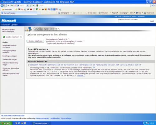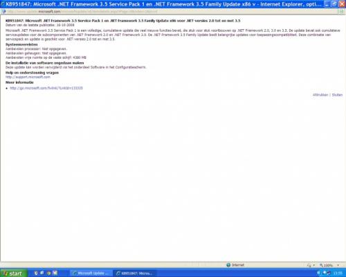 Van alles geprobeerd maar de updates zijn nog steeds niet geinstalleerd. Foutmelding: KB951847: Microsoft .NET Framework 3.5 Service Pack 1 en .NET Framework 3.5 Family Update x86 voor .NET-versies 2.0 tot en met 3.5 Ook Google valt regelmatig uit of is erg langzaam. -