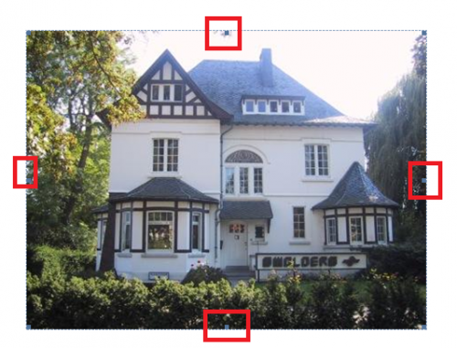 16. Word is spijtig genoeg geen Photoshop, zelfs geen Paint. Je kan in Word 2000 wel "bijsnijden" op een afbeelding. Stel dat je van het kasteel enkel de "voorgevel" wil hebben: - klik op de afbeelding van het kasteel; je ziet dat word er puntjes rond de afbeelding zet: zowel boven, onder, links en rechts. (je moet wel heel goed zien omdat de afbeelding donker is) - zorg dat je dan het bijsnijdsymbool selecteert (op de werkbalk afbeelding klik je dus op de knop Bijsnijden - ga nu met dat bijsnijd symbool naar de "puntjes" op de afbeelding en sleep naar onder. Zoals je ziet wordt er afgeknipt van boven. Op die manier kan je ook naar een "puntje" gaan aan de linkerkant en zo via het bijsnijdsymbool langs lings beginnen knippen totdat je alles hebt weggeknipt en enkel datgene overblijft dat je wil - op die manier heb ik de voorgevel eruit geknipt (uit het kasteel): Zoals je ziet is dat niet perfect uigeknipt, aangezien je enkel kan bijsnijden via 'rechte lijnen' (net zoals je iets wegsnijdt met een lat en breekmes) en dus niet perfect zoals in Photoshop. Er is geen lasso of ander gereedschap in Word waarbij je exact kunt selecteren. Je kan alleen "snijden" van boven, links, onder, rechts. Wil je een cirkel tekenen, en in die cirkel een afbeelding invoegen, dan moet je Word 2003, 2007 of 2010 hebben. Met een vroegere versie gaat dit niet. Bijsnijden wel hoor. Dus probeer de tip hierboven eens. Hier zie je hoe je in Word 2007/2010 het logo van pc-helpforum.be in een pijl kunt zetten. Dit lukt dus echter vanaf (Word 2003?)/2007/2010. - meer uitleg over bijsnijden in Word 2000: Een afbeelding bijsnijden - Illustraties - Microsoft Office Dus exact selecteren rond de randen gaat niet in Word. Paint kan dit wel, maar niet zo precies als Photoshop natuurlijk. Je kan dus via Paint iets uitknippen uit een afbeelding, dit bewaren, en die geknipte afbeelding opslaan in Paint , en die afbeelding invoegen in Word 2000. Dan heb je het ook. Het is een omweg, ik weet het...