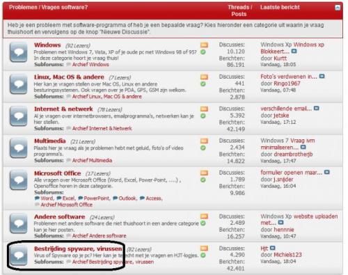 24. Als je direct een logje met RSIT plaatst, moet je je vraag in de categorie "Bestrijding spyware, virussen" plaatsen (zie cirkel hieronder) en NIET hier bij het onderwerp "Windows". Je kan ook op deze link klikken. Dan kom je automatisch in de categorie "Bestrijding spyware, virussen" terecht.n