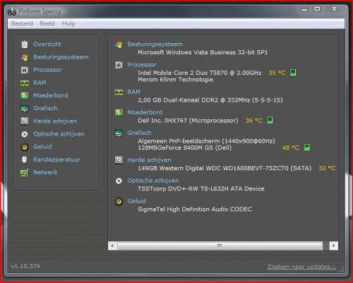 Hallo Jion, bedankt voor de snelle reactie. Ik heb Speccy uitgevoerd, maar met de laptop pas opgestart, dus nog koud. Laat ik hem enige tijd opstaan tot bedrijfstemperatuur vooraleer ik hem scan met Speccy? Jacanape