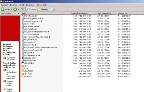 Telkens als ik via "zoeken" iets met Framework 1.1 ingeef, kan ik niets vinden. Alleen bij zoeken met input "Micrsoft .Net", vindt ik in de map C:\WINDOWS\Microsoft.NET\Framework de verwijzingen naar deze map V1.1.4322. Zie bijlage. Is dit misschien iets? Let wel: de updates die maar niet willen lukken zijn bedoeld voor ....Framework 1.1 SP1.