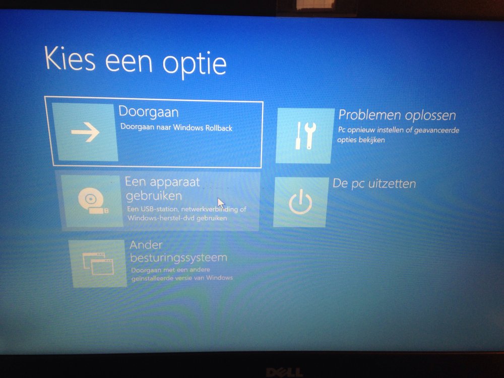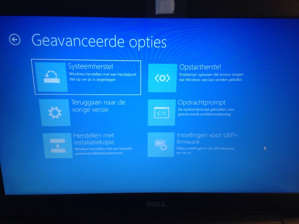 Dag droske ik heb zonet met de f12-toets er voor kunnen zorgen dat ik opstart vanaf mijn USB. Ik probeerde de stapjes te volgen die in jouw link beschreven stonden en dat ging eerst goed maar zit nu vast bij "geavanceerde opties" daar zou ik moeten kiezen voor "deze pc opnieuw instellen" zodat ik dan daarna voor "mijn bestanden behouden" kan kiezen. Alleen zie ik nu dit scherm (zie foto) en kan ik dus niet op "deze pc opnieuw instellen" klikken...