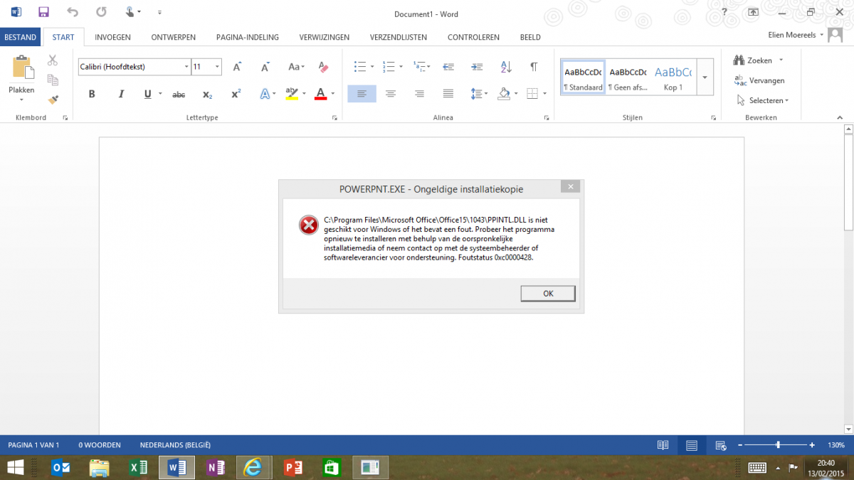 nee ik kan ppt niet gewoon openen. maar word en Excel kan nog wel normaal geopend worden. in bijlage nog meer screenshots. -