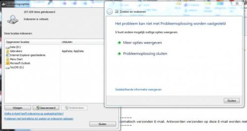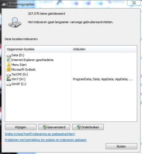 6. Beste, De bijkomende indexeringsronde voor de systeemschijven W = Win 7 en C = WinXP is beëindigd. Dit heeft ook niets veranderd aan het zoekprobleem. Heb je nog andere suggesties? Ik hoor het graag.