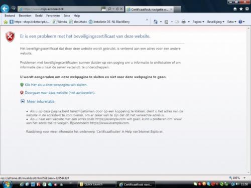 Kape, ik heb emsisoft anti malware nog niet laten scannen, ze willen thuis internetten. Dus dat komt morgen wel. Tussendoor kan ik ook heel even internetten en ik heb ontdekt dat het probleem hier ergens ligt, denk ik , namelijk: https://www.telegraaf.nl/ Kan ik niet op site van de Telegraaf komen. http:// www.telegraaf.nl/ Kan ik wel op de site van de telegraaf komen. Let op!! het verschil van http(s), daar zit het probleem denk ik. Als internet explore opstart dan zit op mijn adres balk standaard htpps:// Volgens mij is dit het probleem, kan het niet checken op mijn laptop, die is namelijk even uitgeschakkeld vanwegen een crash. Dus ik denk dat het probleem in IE zit, wat denk je. - - - Updated - - - Toevoeging:http:// www.telegraaf.nl , ik heb hier een spatie toegevoegd tussen // en www omdat ik het anders niet hier geplaatst kreeg, vandaar.
