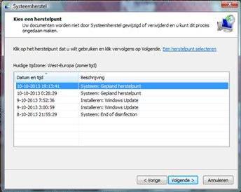 Delfix deed zijn werk prima . Alle herstelpunten zijn weg. Misschien toch een mogelijkheid met systeemherstel, zie bijlage: 8-10-2013 21:55:29 System: End of desinfection Is dat een mogelijkheid ? Of is dat een herstelpunt nadat delfix klaar was.
