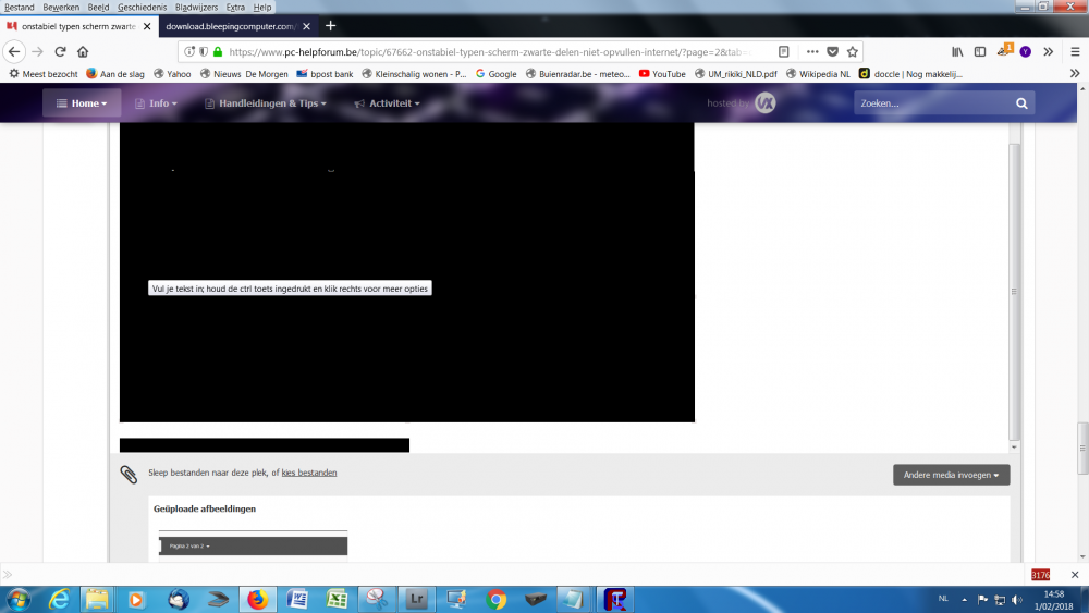 onstabiel typen scherm zwarte delen, niet opvullen internet