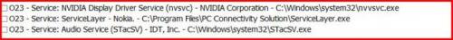 Hallo kweezie wabbit,hier is het logje,de 2 items zijn nu weg.De pc werkt al 5 dagen normaal (geen strepen niet meer gehad) Logfile of Trend Micro HijackThis v2.0.4 Scan saved at 19:25:41, on 30/05/2011 Platform: Windows Vista SP2 (WinNT 6.00.1906) MSIE: Internet Explorer v9.00 (9.00.8112.16421) Boot mode: Normal Running processes: C:\Windows\system32\Dwm.exe C:\Windows\Explorer.EXE C:\Windows\system32\taskeng.exe C:\Program Files\Windows Defender\MSASCui.exe C:\Program Files\Alwil Software\Avast5\AvastUI.exe C:\Program Files\Common Files\Java\Java Update\jusched.exe C:\Windows\ehome\ehtray.exe C:\Program Files\SpywareGuard\sgmain.exe C:\Windows\ehome\ehmsas.exe C:\Program Files\Windows Media Player\wmpnscfg.exe C:\Program Files\SpywareGuard\sgbhp.exe C:\Windows\system32\wbem\unsecapp.exe C:\Windows\System32\mobsync.exe C:\Users\Leo\Downloads\HijackThis.exe R1 - HKCU\Software\Microsoft\Internet Explorer\Main,Search Bar = Bing R1 - HKCU\Software\Microsoft\Internet Explorer\Main,Search Page = Bing R0 - HKCU\Software\Microsoft\Internet Explorer\Main,Start Page = Hotmail, Messenger, nieuws en entertainment vind je op MSN.nl R1 - HKLM\Software\Microsoft\Internet Explorer\Main,Default_Page_URL = Zita - het Web van Z tot A - Nieuws | Entertainment | Lifestyle | Fun R1 - HKLM\Software\Microsoft\Internet Explorer\Main,Default_Search_URL = Bing R1 - HKLM\Software\Microsoft\Internet Explorer\Main,Search Page = Bing R0 - HKLM\Software\Microsoft\Internet Explorer\Main,Start Page = Zita - het Web van Z tot A - Nieuws | Entertainment | Lifestyle | Fun R0 - HKLM\Software\Microsoft\Internet Explorer\Search,SearchAssistant = R0 - HKLM\Software\Microsoft\Internet Explorer\Search,CustomizeSearch = R1 - HKCU\Software\Microsoft\Internet Explorer\SearchURL,(Default) = Bing R1 - HKCU\Software\Microsoft\Internet Explorer\Main,Window Title = Telenet Internet R1 - HKCU\Software\Microsoft\Windows\CurrentVersion\Internet Settings,AutoConfigURL = http://pac.telenet.be:8080/ O1 - Hosts: ::1 localhost O2 - BHO: AcroIEHelperStub - {18DF081C-E8AD-4283-A596-FA578C2EBDC3} - C:\Program Files\Common Files\Adobe\Acrobat\ActiveX\AcroIEHelperShim.dll O2 - BHO: SpywareGuard Download Protection - {4A368E80-174F-4872-96B5-0B27DDD11DB2} - C:\Program Files\SpywareGuard\dlprotect.dll O2 - BHO: Search Helper - {6EBF7485-159F-4bff-A14F-B9E3AAC4465B} - C:\Program Files\Microsoft\Search Enhancement Pack\Search Helper\SEPsearchhelperie.dll O2 - BHO: Windows Live ID Sign-in Helper - {9030D464-4C02-4ABF-8ECC-5164760863C6} - C:\Program Files\Common Files\Microsoft Shared\Windows Live\WindowsLiveLogin.dll O2 - BHO: Google Toolbar Notifier BHO - {AF69DE43-7D58-4638-B6FA-CE66B5AD205D} - C:\Program Files\Google\GoogleToolbarNotifier\5.0.926.3450\swg.dll O2 - BHO: Java Plug-In 2 SSV Helper - {DBC80044-A445-435b-BC74-9C25C1C588A9} - C:\Program Files\Java\jre6\bin\jp2ssv.dll O4 - HKLM\..\Run: [Windows Defender] %ProgramFiles%\Windows Defender\MSASCui.exe -hide O4 - HKLM\..\Run: [sysTrayApp] %ProgramFiles%\IDT\WDM\sttray.exe O4 - HKLM\..\Run: [avast5] "C:\Program Files\Alwil Software\Avast5\avastUI.exe" /nogui O4 - HKLM\..\Run: [sunJavaUpdateSched] "C:\Program Files\Common Files\Java\Java Update\jusched.exe" O4 - HKLM\..\Run: [Adobe Reader Speed Launcher] "C:\Program Files\Adobe\Reader 9.0\Reader\Reader_sl.exe" O4 - HKCU\..\Run: [ehTray.exe] C:\Windows\ehome\ehTray.exe O4 - Startup: SpywareGuard.lnk = C:\Program Files\SpywareGuard\sgmain.exe O8 - Extra context menu item: Add to Google Photos Screensa&ver - res://C:\Windows\system32\GPhotos.scr/200 O8 - Extra context menu item: Afbeelding verzenden naar &Bluetooth-apparaat... - C:\Program Files\ANYCOM\Blue USB-200-250\btsendto_ie_ctx.htm O8 - Extra context menu item: E&xporteren naar Microsoft Excel - res://C:\PROGRA~1\MICROS~2\Office12\EXCEL.EXE/3000 O8 - Extra context menu item: Pagina verzenden naar &Bluetooth-apparaat... - C:\Program Files\ANYCOM\Blue USB-200-250\btsendto_ie.htm O9 - Extra button: @C:\Program Files\Windows Live\Writer\WindowsLiveWriterShortcuts.dll,-1004 - {219C3416-8CB2-491a-A3C7-D9FCDDC9D600} - C:\Program Files\Windows Live\Writer\WriterBrowserExtension.dll O9 - Extra 'Tools' menuitem: @C:\Program Files\Windows Live\Writer\WindowsLiveWriterShortcuts.dll,-1003 - {219C3416-8CB2-491a-A3C7-D9FCDDC9D600} - C:\Program Files\Windows Live\Writer\WriterBrowserExtension.dll O9 - Extra button: Verzenden naar OneNote - {2670000A-7350-4f3c-8081-5663EE0C6C49} - C:\PROGRA~1\MICROS~2\Office12\ONBttnIE.dll O9 - Extra 'Tools' menuitem: Verz&enden naar OneNote - {2670000A-7350-4f3c-8081-5663EE0C6C49} - C:\PROGRA~1\MICROS~2\Office12\ONBttnIE.dll O9 - Extra button: Research - {92780B25-18CC-41C8-B9BE-3C9C571A8263} - C:\PROGRA~1\MICROS~2\Office12\REFIEBAR.DLL O9 - Extra button: @btrez.dll,-4015 - {CCA281CA-C863-46ef-9331-5C8D4460577F} - C:\Program Files\ANYCOM\Blue USB-200-250\btsendto_ie.htm O9 - Extra 'Tools' menuitem: @btrez.dll,-12650 - {CCA281CA-C863-46ef-9331-5C8D4460577F} - C:\Program Files\ANYCOM\Blue USB-200-250\btsendto_ie.htm O11 - Options group: [ACCELERATED_GRAPHICS] Accelerated graphics O16 - DPF: {D27CDB6E-AE6D-11CF-96B8-444553540000} (Shockwave Flash Object) - http://fpdownload2.macromedia.com/get/shockwave/cabs/flash/swflash.cab O18 - Protocol: wlpg - {E43EF6CD-A37A-4A9B-9E6F-83F89B8E6324} - C:\Program Files\Windows Live\Photo Gallery\AlbumDownloadProtocolHandler.dll O22 - SharedTaskScheduler: Component Categories cache daemon - {8C7461EF-2B13-11d2-BE35-3078302C2030} - C:\Windows\system32\browseui.dll O23 - Service: avast! Antivirus - AVAST Software - C:\Program Files\Alwil Software\Avast5\AvastSvc.exe O23 - Service: NVIDIA Display Driver Service (nvsvc) - NVIDIA Corporation - C:\Windows\system32\nvvsvc.exe O23 - Service: ServiceLayer - Nokia. - C:\Program Files\PC Connectivity Solution\ServiceLayer.exe O23 - Service: Audio Service (STacSV) - IDT, Inc. - C:\Windows\system32\STacSV.exe -- End of file - 5976 bytes