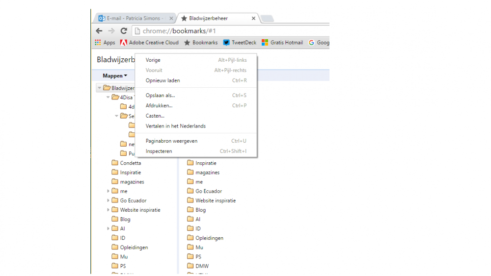 20. hallo, Sinds recent heb ik vreemde dingen SEP die tussen de tekst verschijnen. Dit heb ik alleen in Chrome ( Mozilla/Firefox/Opera oke). Ik heb het idee om Chrome volledig opnieuw te installeren maarr ik krijg de bookmarks niet geexporteerd in een HTML file via bladwijzerbeheer. Dit zou normaal gezien moeten verschijnen maar is dus niet het geval. HTML oplsaan is dus niet voldoende om alle bookmarks te bewaren. Iemand een idee hoe die vreemde dingen eruit te krijgen? Dank voor de feedback. Patricia