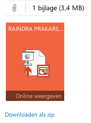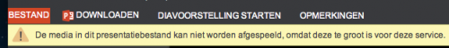 @ Rolle, Betreffende MS Office 2011 Mac kan ik je niet helpen, ik bedoel ik weet niet welke exacte link je zou moeten downloaden. In plaats van MS Office 2011 voor Mac gebruik ik LibreOffice-versie 4.0.3.3 Een .pps wordt afgespeeld, het resultaat alleen audio geen beelden Ik heb daarna het .pps bestand geopend via Windows 7 [laptop] en daarna opgeslagen als .ppt bestand. Op de iMac LibreOffice opgestart en het .ppt bestand wordt keurig afgespeeld [beeld en geluid] xD Wellicht de moeite waard om te proberen met LibreOffice. update: Als je het .pps bestand als bijlage ontvangt bij een e-mail, klik op Online weergeven Het .pps bestand wordt afgespeelt via PowerPoint Web App Klik op Diavoorstelling starten >> Audio wordt niet afgespeeld. -