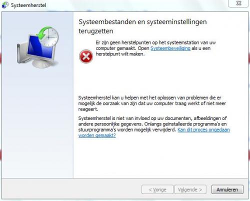 Niet gelukt, ik krijg weer de melding dat er geen herstelpunt is. -