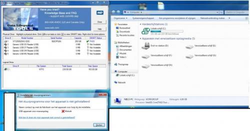 hallo ik heb al een hele tijd en externe harde schijf van WD (western digital). Maar vanaf ik mijn pc heb geherformateerd word deze niet meer herkend of m.a.w. het stuurprogramma wordt niet gevonden zie bijvoeging afb. nu mijn grootste zorgen zijn dat het gaat om een schijf van 1.5tb en dat er allerlei handige bestanden , films ,games + gamesaves dus zou het mogelijk zijn deze nog te recoveren zo als je zie op de fotos werkt het niet met wd recovery ook krijg ik de melding als ik hem in en andere usb poort steek :USB-apperaat Voor massaopslag MISLUKT mvg neels