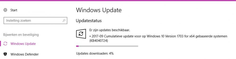 21. klikken op de update KB4040724 geeft: en klikken op "meer informatie" geeft: https://support.microsoft.com/nl-nl/help/4040724/windows-10-update-kb4040724 September 25, 2017—KB4040724 (OS Build 15063.632) Improvements and fixes This update includes quality improvements. No new operating system features are being introduced in this update. Key changes include: Reliability improvements and fixes for cellular connectivity. Addressed issue in Microsoft Edge where on first launch after installing KB4038788, or periodically thereafter, users may observe performance issues or unresponsiveness until the next launch of the browser. If you installed earlier updates, only the new fixes contained in this package will be downloaded and installed on your device. For more information about the resolved security vulnerabilities, please refer to the Security Update Guide. Known issues in this update Symptom Workaround Installing KB4034674 may change Czech and Arabic languages to English for Microsoft Edge and other applications. Microsoft is working on a resolution and will provide an update in an upcoming release. How to get this update This update will be downloaded and installed automatically from Windows Update. To get the standalone package for this update, go to the Microsoft Update Catalog website. File information For a list of the files that are provided in this update, download the file information for cumulative update 4040724. (zie Excel-bijlage a.u.b.) 4040724.csv Eigenschappen Artikel-id: 4040724 - Laatst bijgewerkt: 26 sep. 2017 - Revisie: 20 De informatie in dit artikel is van toepassing op: Windows 10 Version 1703
