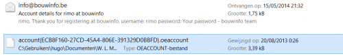 Jaaaa!! Het is gelukt! Toch raar dat ik naar het bestand zocht via verkenner + ""zoeken" en "hij" het niet vond. Maar gezien, en je voelt hem al aankomen, met de vooruitzichten(van Win XP naar Win 8.1) dat ik wellicht nog andere vragen zal stellen, wou ik zoveel mogelijk zelf uitproberen. Was al wel 4 uren aan het uitproberen. Met grote dank k voor de reacties! Tot euh..later dan maar?