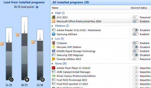 3. Beste leden, Sinds kort gebruik ik Tunep Utilities waarmee je gemakkelijk kan zien welke software op achtergrond van je systeem actief is. Microsoft Office 2010 is een geval die dus op achtergrond werkt en behoorlijk van je geheugen belasten. Maar dankzij PCH ben ik ook teweten gekomen dat ''registry cleaners/ tuning programmas'' niet te aan raden is. Dus wil ik van Tune up afgeraken, maar hoe kan ik dan zonder TuneUp alle nutteloze actieve programmas op background deactiveren? Mvg