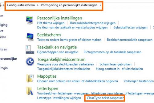 Ik heb het ook meegemaakt - maar dan in Win 8.1 en daar moet je het hier gaan zoeken: (maak eerst een herstelpunt aan) Mogelijk is het bij jou ook onder die instellingen van ClearType te vinden?