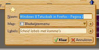 Ik zie nergens een blauw sterretje... ? (mogelijk hangt het van de skin af?) - maar je kan ook (voor de actuele pagina) op tabblad Bladwijzers klikken en dan kiezen voor: bladwijzer van deze pagina maken - en dan krijg je het scherm van mijn plaatje (met keuze van waar je het wil opslaan)