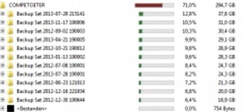 Dus de inhoud van die map Competoeter krijg je niet te zien? ~ een screenshot is dus overbodig in dat geval... Misschien overbodige vragen maar toch: a. je herkent die map Competoeter toch? (ik bedoel: ze is niet door een vorige eigenaar of weet-ik-wie erop gezet? b. de backups: zeggen die je iets? zijn ze door jou gemaakt - zo ja: met welk programma > en in dat geval: kan je ze met dàt programma ook niet zien? (een backup moet terug te zetten zijn, moet je dus kunnen aanduiden, moet dus minstens in het backupprogramma te zien zijn... ?