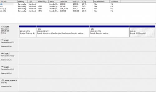 Dit vond ik nogal vreemd dus het eens over een andere boeg gegooid. Bij het installeren van windows de C en D schijf geformatteerd en dan windows geïnstalleerd, maar zonder verbetering...