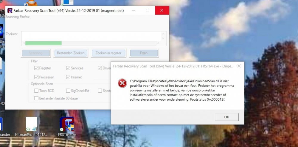 ik was er al bang voor dat het geval was. Automatische backup heb ik uitgezet, nadat er ooit iemand een backup had teruggezet, die ook niet foutvrij was. Maar ja als het niet anders kan moet ik het maar doen. Eventueel met instructies van jullie misschien hebben jullie wel een procedure liggen hoe het moet. Dan zie bijlages van FRST.....scannen wordt onderbroken met een foutmelding zie bijlage Na het sluiten van de pop-up gaat FRST wel gewoon door en maakt de TXT files Addition.txt FRST.txt -