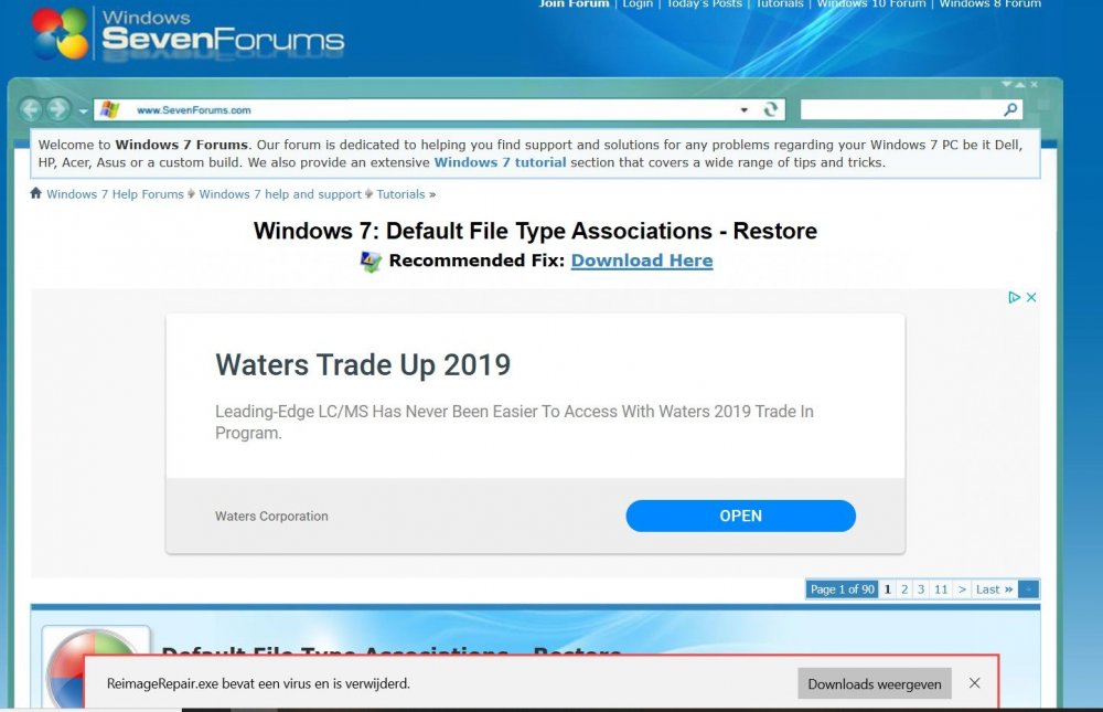 reset file associations gedaan....download geeft nog steeds virus melding. Vervolgens Associations restore geprobeerd....loop weer tegen hetzelfde probleem aan ( zie bijlage) Start die link het prog direct of kan ik dat via mijn andere computer oplossen? -