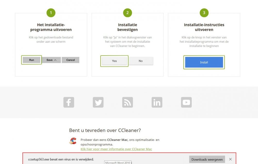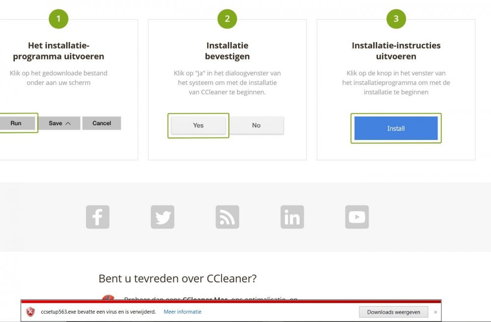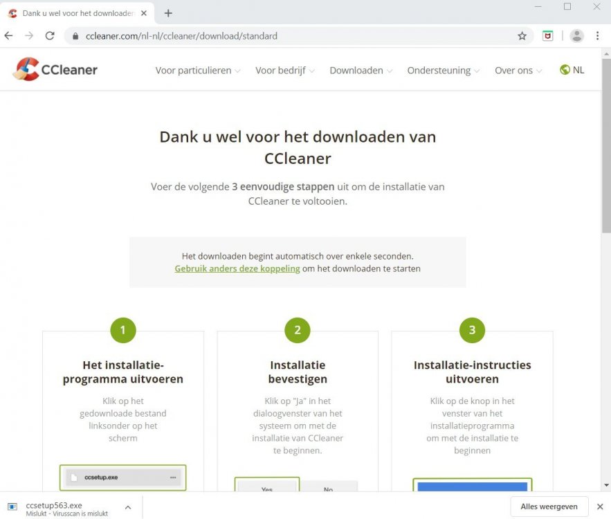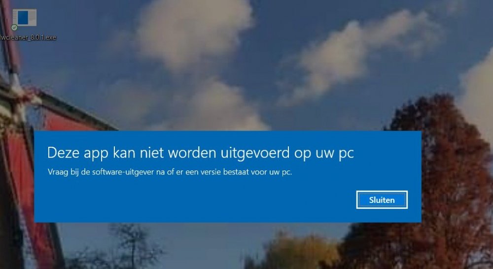 hal Ik heb met 3 verschillende browsers geprobeerd om CCleaner te downloaden. bij alle 3 niet gelukt....zie 3 bijlages (chrome/edge/explorer) vervolgens adwcleaner gedownload op mijn andere computer en via usb stick gekopieerd naar het bureaublad van deze laptop. Als ik adwcleaner_8.0.1.exe als adminstrator ga uitvoeren krijg ik bijgaande pop-up. -