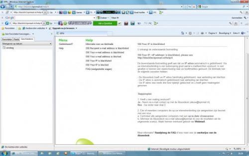 Hallo Kape, zoals ik in bericht 14 aangaf, heb ik 2 computers hetzelfde probleem (geen mail kunnen verzenden met KPNmail) in bericht 18 gaf je zelf aan: "Laat ons even - om niet tot misverstanden te komen - deze computer eerst aanpakken, tot we weten of malware in het spel is. Daarna gaan we dan aan de slag met jouw computer". Het probleem (niet kunnen mailen via KPN-mail) bestaat helaas nog steeds zie paintafbeeldingen -