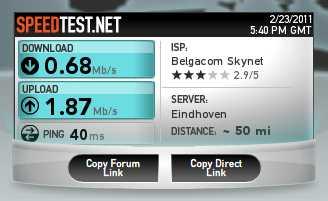 Sinds 3 weken is mijn downloadsnelheid HEEL traag! IK heb windows 7 en heb een Belgacompakket, favorite met vaste lijn OM 5 MB te downloaden heb ik 10 tot 20 minuten nodig. Ik heb al eens een speedtest gedaan maar volgens mij lijkt alles toch in orde. Wat kan ik doen? Kan iemand mij raad geven aub Ik ken er wel niet veel van... IK zal de speedtest toevoegen als bijlage.