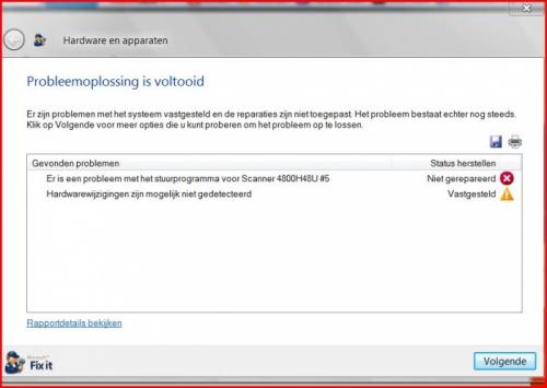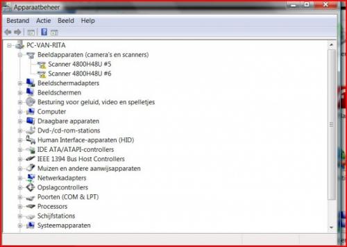 heb gedaan wat je vroeg. Daarna de pc weer opgestart en onder apparaten verschijnt zelfs niet meer beeldapparaten. dus ook niet meer de naam van de scanner.Wat ik mij nu afvraag is toen de technieker een ander moederbord gestoken heeft moet dit ermee te maken hebben want voorheen deed de scanner het prima. Wat denk je dat er gebeurd kan zijn? Antwoord aub. Dank U Als ik mijn andere scanner aansteek dan verschijnt wel beeldapparaten en daaronder de naam van de andere scanner.dit ter inlichting