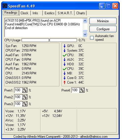 In antwoord op stegisoft: Ik neem aan van wel, aangezien de kast open staat met erop een externe ventilator (voor personen) van de Makro. Aangezien de kast open is kijk ik ook af en toe of alle ventilators die ik snel kan zien draaien (CPU, GPU en Kast), en ze draaien altijd allemaal als ik kijk. Daarnaast geeft speedfan ook aan dat de Fans allemaal op 1200 rpm draaien. Ook heb ik de 8800 GT sinds 2008 en heeft hij het altijd gedaan en heb ik hem eigenlijk sinds 2008 nooit uit het moederbord gehaald. Ik had overigens net weer het probleem (20 mins geleden) en dit keer was ik vooral bezig in Excel, powerpoint en adobe reader (pdf's) terwijl ik aan het browsen was op firefox, skype en wat rand programmas aan had staan zoals speedfan. Weer liep de pc "vast". Ik heb toen na 1 min uitstaan en met de stroom eraf voorzichtig geprobeerd te voelen of de HDD erg heet is aan de buitenzijde of niet, dit was niet echt het geval, maarja echt voelen kan ik niet aangezien de HDD binnenin zit. Ook warmte rond de lucht rond de GPU viel sterk mee. Maar hoeveel kan ik nu zeggen aan de hand van de luchttemperatuur. Overigens een opmerking om te maken is dat ik in Windows 7 geen eventviewer berichten/waarschuwingen krijg tijdens de 'bevries-cyclus' terwijl dat in windows XP het probleem vrijwel altijd overeenkwam met de error-berichten over Atapi.sys. -