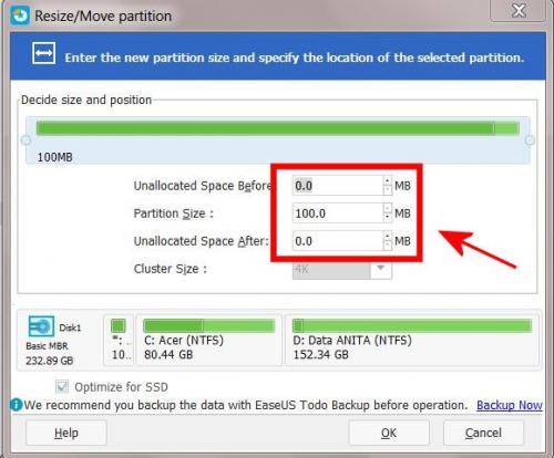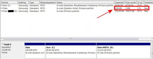 Probleem lijkt me inderdaad te liggen bij het door systeem toegewezen volume (zie bijlage) Op mijn desktop is dit 100 / 70 / 70% en zijn er geen problemen. In uw link worden twee tools vermeld (Partition Master en Mini Tool Partition Wizard). Het lijken wel koppies van elkaar. In beide is het onmogelijk het systeemvolume te vergroten. Ingegeven waarden springen gewoon terug naar actuele waarden. Voor C en D kan men wel nieuwe waarden ingeven (natuurlijk niet uitgevoerd). Ken nu waarschijnlijk wel het probleem maar kan het niet oplossen.