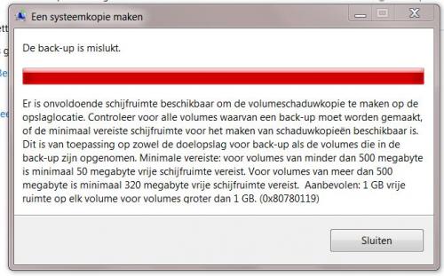 Acer W7. Tijdje geleden HDD vervangen door Samsung SDD 250 GB. Migratie met Samsung tool via SATA-USB adapter. C partitie 80 GB D partitie 152 GB Alles probleemloos. Nu wil ik een systeemkopie maken van C en krijg bijgevoegde waarschuwing. Heb via systeembeveiliging / configureren het maximum gebruik op beide partities meerdere malen verhoogd, zelfs tot het maximum. Meen mij te herinneren dat ik op mijn desktop ooit eens hetzelfde bericht gekregen heb maar door verhogen van het maximum gebruik was dit opgelost. Op de laptop blijft het bericht komen. Enig idee?