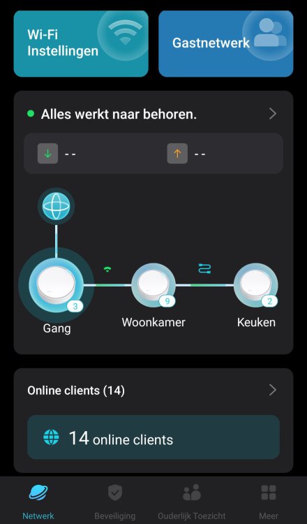 De tekst in mijn bericht hierboven staat voor ongekende reden precies in het wit, waardoor het dus onleesbaar is (tenzij je het selecteert). Het werd geplaatst via smartphone. In deze reactie hieronder mijn oorspronkelijke tekst (via pc nu): Hallo, ik zit met 2 vragen over een mesh-systeem dat ik sinds kort heb geïnstalleerd (TP-Link Deco-X50 Mesh). Ik heb er 3 geïnstalleerd, alle 3 via een PoE-switch verbonden aan internet. 1) Mss ligt het gewoon aan een onduidelijk gebruikte layout in de app, maar als ik de verbinding in de app zie (zie foto 1), dan is het precies alsof enkel de gang verbonden is met bekabeld internet. De woonkamer lijkt dan via WiFi met de gang verbonden te zijn en op zijn beurt lijkt de woonkamer via kabel met de keuken verbonden te zijn. 2) Ik heb een Synology NAS en als ik naar de online cliënts in mijn Deco-app kijk, dan zie ik data-trafiek (download) van de NAS (zie foto 2). Ik vermoed dat dit data-verkeer is van mijn IP-camera naar de NAS waar de beelden worden opgeslagen. Is er een mogelijkheid om in de Deco-app te zien vanwaar het data-verkeer vandaan komt? Mvg, Peter -