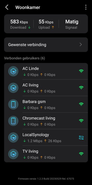 Hallo, ik zit met 2 vragen over een mesh-systeem dat ik sinds kort heb geïnstalleerd (TP-Link Deco-X50 Mesh). Ik heb er 3 geïnstalleerd, alle 3 via een PoE-switch verbonden aan internet. 1) Mss ligt het gewoon aan een onduidelijk gebruikte layout in de app, maar als ik de verbinding in de app zie (zie foto 1), dan is het precies alsof enkel de gang verbonden is met bekabeld internet. De woonkamer lijkt dan via WiFi met de gang verbonden te zijn en op zijn beurt lijkt de woonkamer via kabel met de keuken verbonden te zijn. 2) Ik heb een Synology NAS en als ik naar de online cliënts in mijn Deco-app kijk, dan zie ik data-trafiek (download) van de NAS (zie foto 2). Ik vermoed dat dit data-verkeer is van mijn IP-camera naar de NAS waar de beelden worden opgeslagen. Is er een mogelijkheid om in de Deco-app te zien vanwaar het data-verkeer vandaan komt? Mvg, Peter