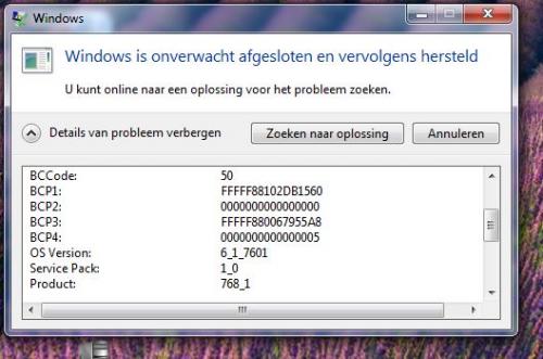 - - - Updated - - - Beste, Voorgaande heb ik kunnen vastleggen als screenshot in normale opstart. Daarna terug een dump, op het moment dat ik het gegeven op het forum plaatste. mvg serjo -