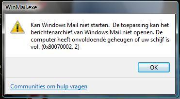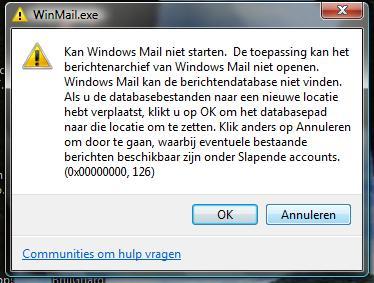 Hallo, ik zit met het probleem dat wanneer ik Windowss Mail probeer te openen dat ik dit krijg: (Zie document) Gelieve dit snel af te handelen indien mogelijk, want mails zijn van belang. Eventueel gratis programma dat je register scant, want RegistryBooster vond 500 fouten na een scan maar ik kan deze niet repareren omdat dit een trial is.