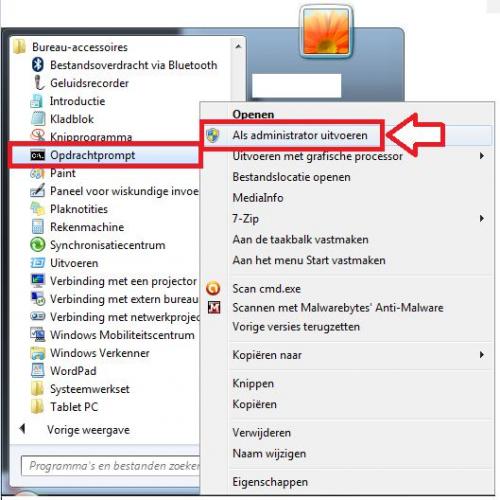 Open het opdrachtprompt door er met rechts op te klikken, kies voor Als administrator uitvoeren en geef dan de opdracht sfc /scannow in. -