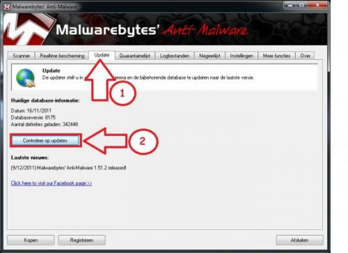 Het logje is inderdaad van een recente scan, maar met een verouderde database... Voor dat je MBAM laat scannen dien je eerst naar het tabblad Update te gaan...door daar te klikken opde knop Controleren op updates beschik je over de meest recente database, zie afbeelding. -