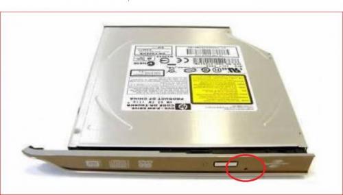 Positie van 'het gaatje' bij cd/dvd-station van de Acer Aspire 4810T : zie markering op afbeelding in bijlage.