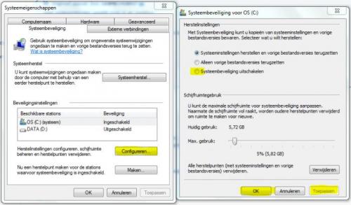 Hier vind je het antwoord op je vraag ivm het inschakelen van systeemherstel : ( Systeemherstel inschakelen of uitschakelen )