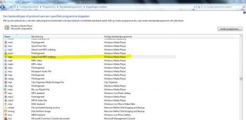 Systeemherstel is dus al opgelost...gedeeltelijk...ttz, het is actief vanaf nu en dat was het niet... We kunnen dus nu niet op een herstelpunt terugvallen. Nu eens kijken naar het volgende : configuratiescherm --> programma's --> standaardprogramma's --> een bestandstype of protocol aan een programma koppelen. Staat .mp3 gelinkt aan WMP ?