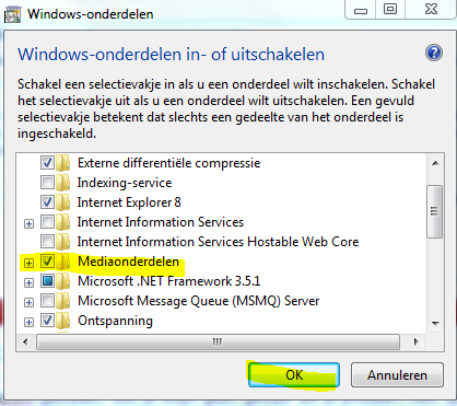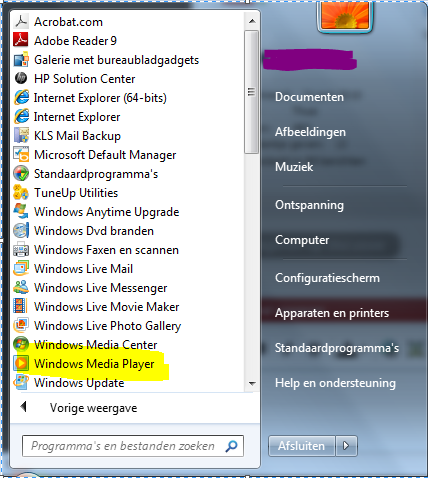 Da's idd de vraag hé... WMP maakt zowiezo deel uit van Windows. Als ie er nog op zit krijg je dan ook die melding of mogelijkheid hem te herstellen... Als ik het juist heb, heb je een herstelpunt gemaakt, dus je loopt geen gevaar als je probeert hem opnieuw te installeren. Eerst deze nog proberen graag : configuratiescherm --> programma's --> programma's en onderdelen --> nu klik je in de linker kolom op 'Windowsonderdelen in- of uitschakelen...je haalt het vinkje weg bij mediaonderdelen, klikt op ok en start je pc opnieuw op... Nadien doe je hetzelfde, maar schakel je mediaonderdelen opnieuw in. Klik ook eens op dat plusje en kijk of daar mediaplayer aanwezig is.