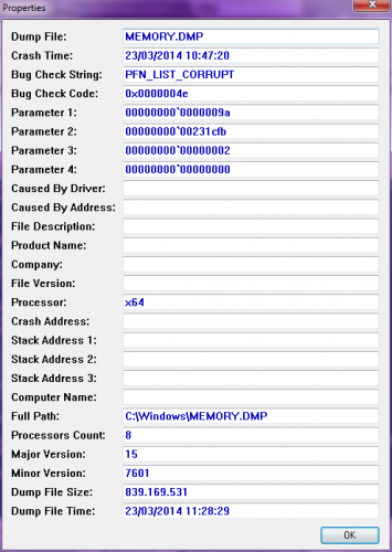 Bedankt.. kheb net nog een keer BSOD gehad.. Nu ben ik wel wat bezorgt. Kan ik niks doen met het vorige Dumpbestand? - - - Updated - - - Oké blijkbaar kan ik daar dus wel iets mee doen.. Maar nu weet ik niet wat ik ermee ben Kzal zoveel mogelijk info tonen. Pls help.. Zoveel vertrouwen heb ik er niet meer in De laatste keer toen ik m'n PC heb opgezet.. Kwam er te staan. Cant boot corrupted image.. ofzoiets -