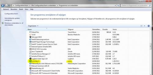 Van de reclame heb ik geen last meer en geen verdere problemen. Nog een vraagje over dat programma in mijn eerste bericht nl. "LyricsSay-1". Ik weet niet vanwaar dit komt en de naam Lyrics kwam ook voor in de naam van het virus dat Malwarebytes gedetecteerd heeft. Daarom dacht ik dat het misschien iets te maken heeft met dat virus. Zou ik dit programma kunnen verwijderen zonder verdere schade aan te brengen?